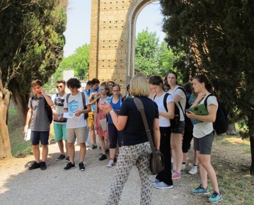 Pot nas je nato vodila do najpomembnejše točke celotne ekskurzije – Ogleja oziroma rimske Aquleie. V rimskem obdobju je bila Aquileia ena največjih in najbolj prepoznavnih mest. Ogled smo začeli z rimskim forumom ter nadaljevali z ogledom ostankov velikega rečnega pristanišča. Sprehodili smo se po visokem nasipu, ki je nastal na odpadnem materialu po izkopavanjih. Po njem danes poteka arheološka pot Via Sacra.