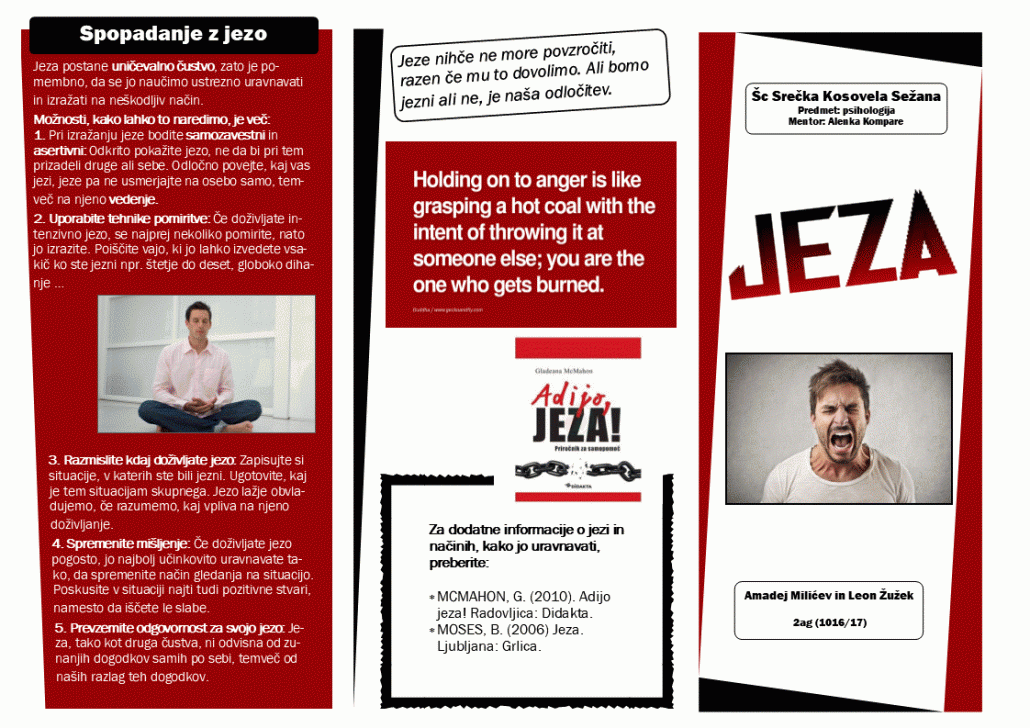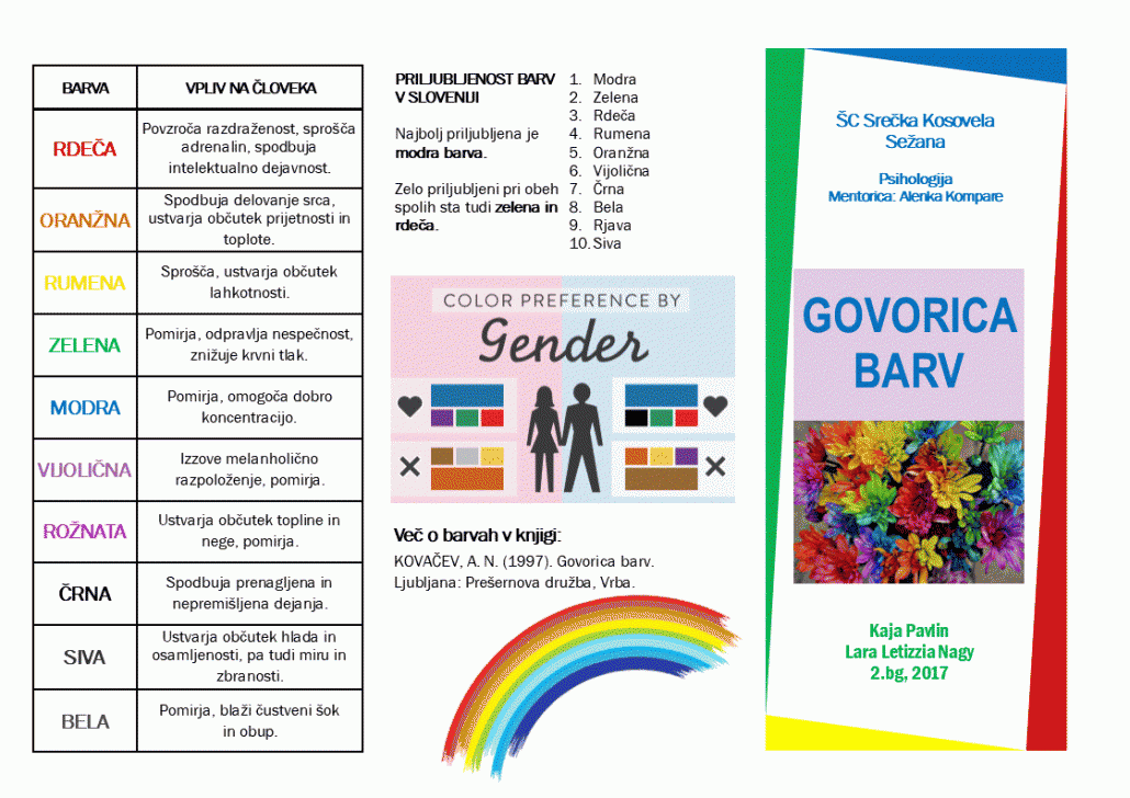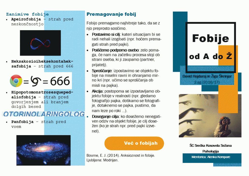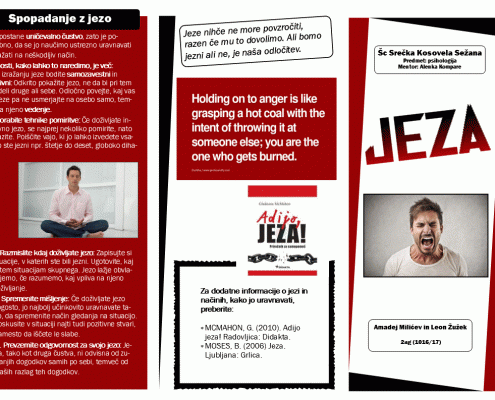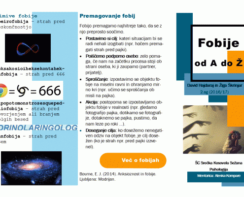 V šolskem letu 2016/17 so pri družboslovnem sklopu dijaki izdelovali zloženke, v katerih so predstavili strokovna psihološka spoznanja o jezi, strahu in fobijah, psihologiji barv, samopodobi, ljubezni, stresu in motnjah hranjenja na zanimiv in privlačen način.