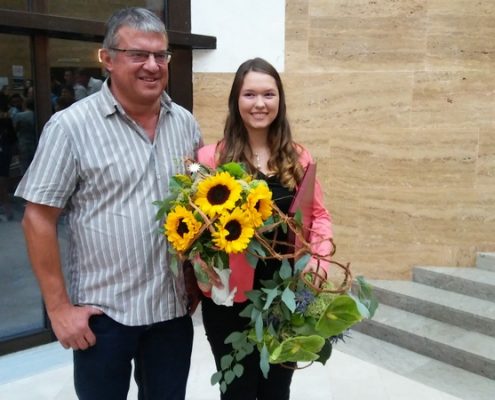 Najvišje občinsko priznanje, nagrado Občine Sežana, je prejela bivša dijakinja Šolskega centra Srečka Kosovela, programa aranžerski tehnik, zdaj pa 20-letna študentka fotografije sežanske višje strokovne šole Ines Pahor iz Sežane za odmevno postavitev razstave Holokavst ter izrazit čut za ustvarjanje skupnega dobrega.