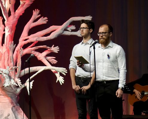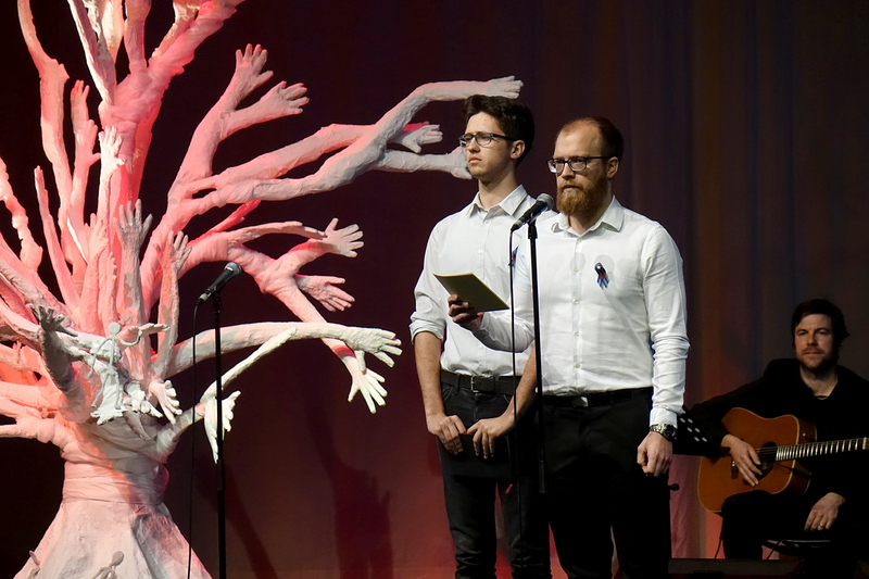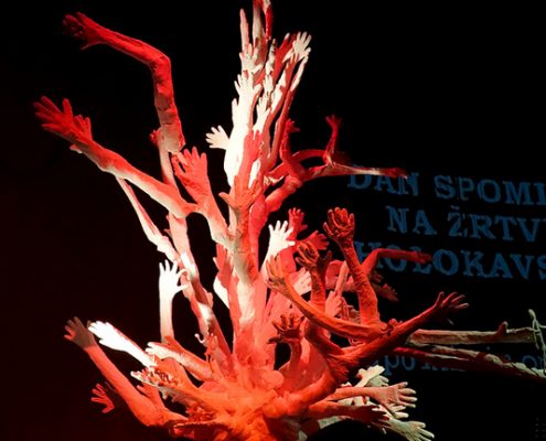 V slovesnost je bila vključena prostorska instalacija Ines Pahor (študentka VŠS, smer fotografija), ki je nastala kot del maturitetne naloge z naslovom Holokavst na Šolskem centru Srečka Kosovela Sežana (program aranžerski tehnik). Drevo življenja v beli barvi, ki predstavlja upanje in novo rojstvo, je letos simbolično sestavljeno iz 73 rok (73. obletnica osvoboditve koncentracijskega taborišča Auschwitz), raste pa iz korenin v obliki Davidove zvezde (kot opomin, da je v taboriščih umrlo največ Judov).