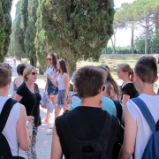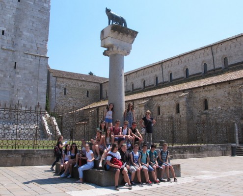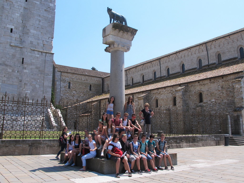 Glavni cilj pa je bilo mestece Oglej. Antična Aquileia je bila eno najpomembnejših mest v rimskem imperiju, današnje mestece pa je v celoti arheološki spomenik. Dijaki so se sprehodili mimo foruma, ob nekdanjem rečnem pristanišču in mimo ostankov rimskih vil. Ogledali so si tudi baziliko, ki jo krasijo najlepši in najobsežnejši poznoantični mozaiki.