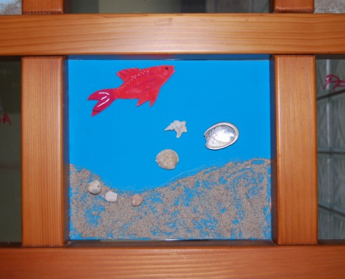 V veselem pričakovanju poletnih počitnic so Ana Fink, Anjel Lavin in Jurij Fidel iz 3. letnika programa aranžerski tehnik oblikovali poletno dekoracijo v znamenju morja in z njo okrasili pregradno steno jedilnice v okrepčevalnici Apetit v Sežani.