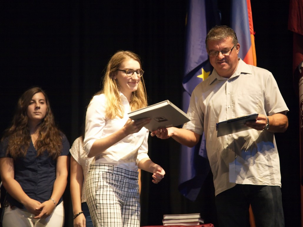 Srečno in pogumno še naprej – pri študiju in po življenjskih poteh, ki jih bodo izbrali – smo jim zaželeli s kratkim, glasbeno obarvanim programom. Zaigrali in zapeli so dijakinja in dijaki naše šole: Zala Zupan, Janez Jurančič, Aleksander Lesar (4. gim), Grega Stevanovski (4. et) in Martin Stojanoski (1. gim).