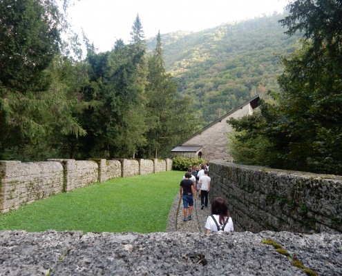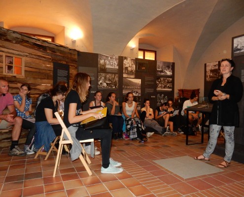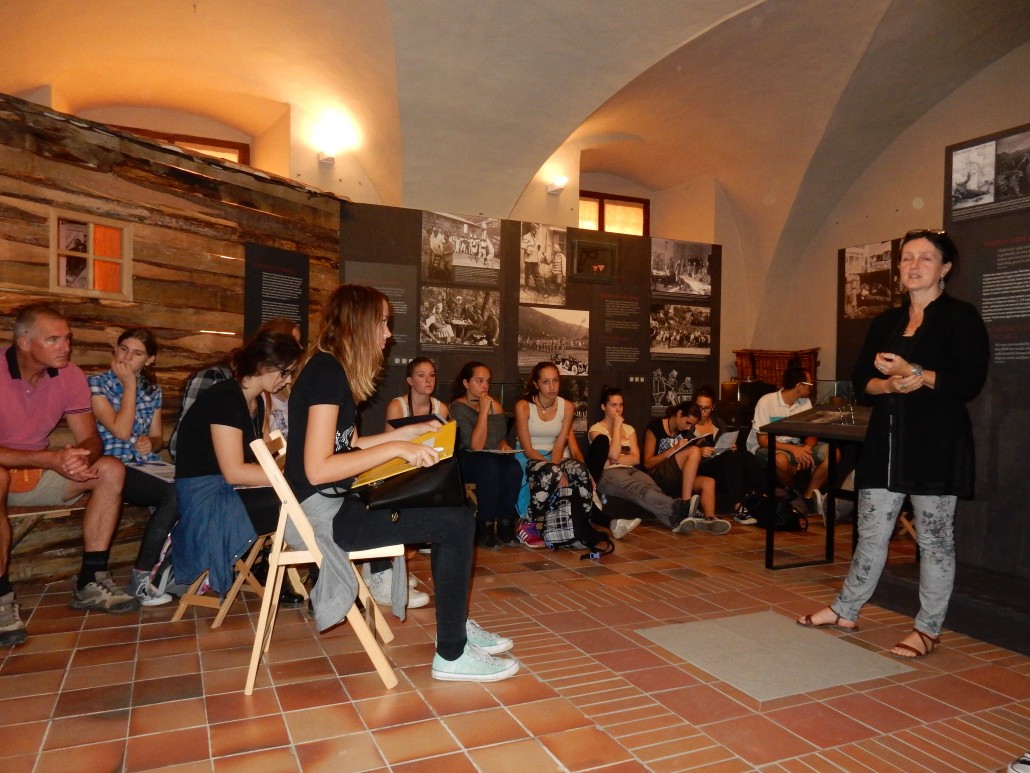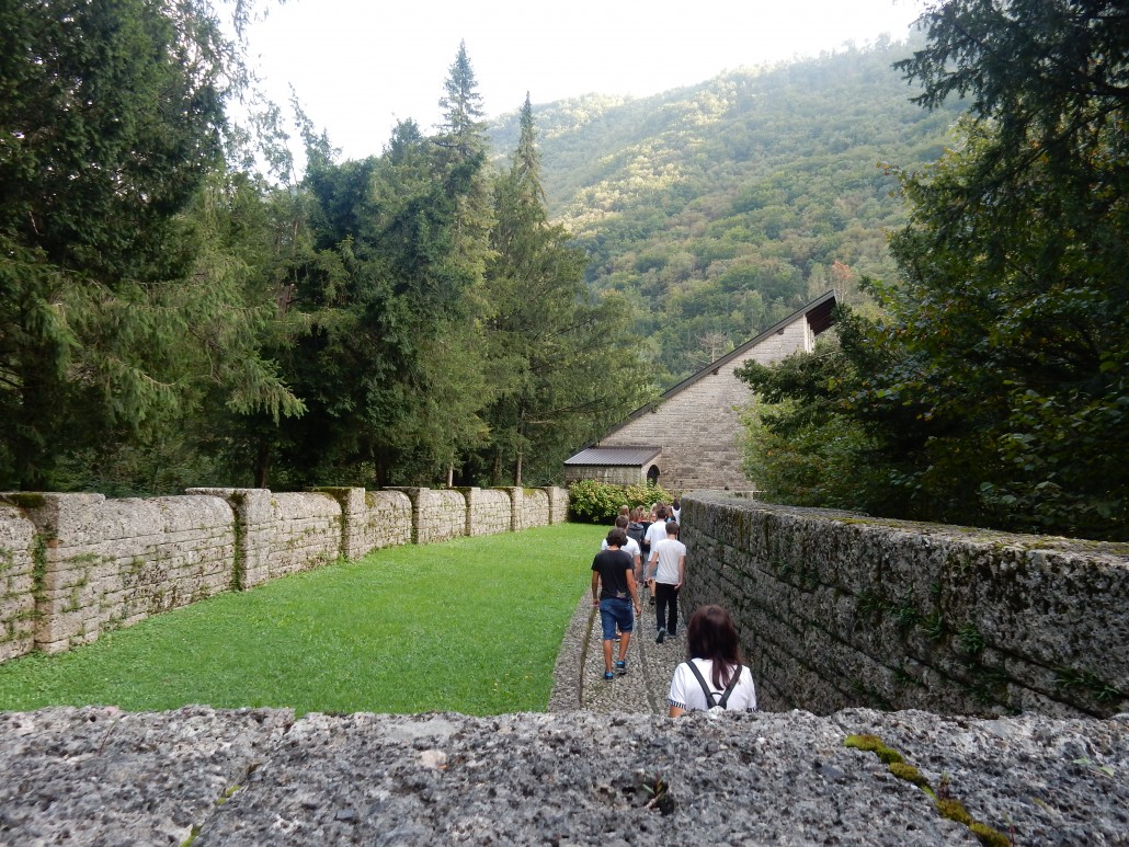V Tolminskem muzeju je kustosinja Karla Kofol dijake popeljala skozi razstavo Človek in vojna, nato pa so si ogledali še nemško kostnico.