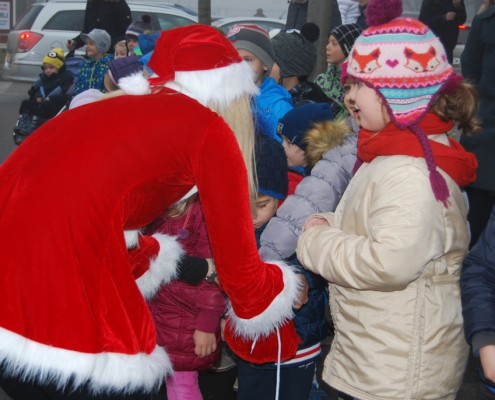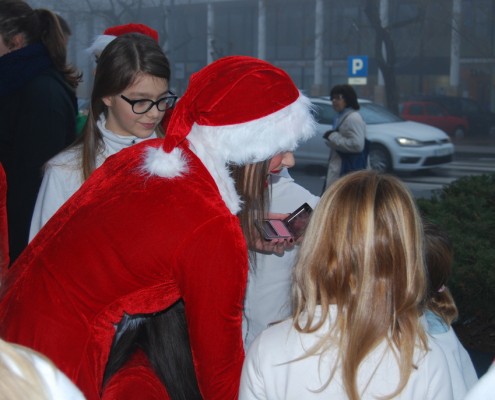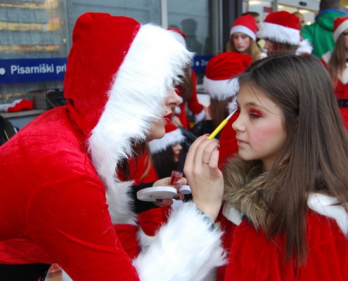 Moj pogled na dogodek: ”Moj del se je začel s preoblačenjem v kostum Božička. Že takrat me je Miha kot vedno dobro nasmejal, tako da sva na Partizansko ulico, kjer se je odvijal dogodek, prišla dobro razpoložena. Miha se je pridružil predsednici plesnega društva Mavrica Martini Tavčar in ostalim plesalkam, jaz pa sem začela s fotografiranjem dogodka.