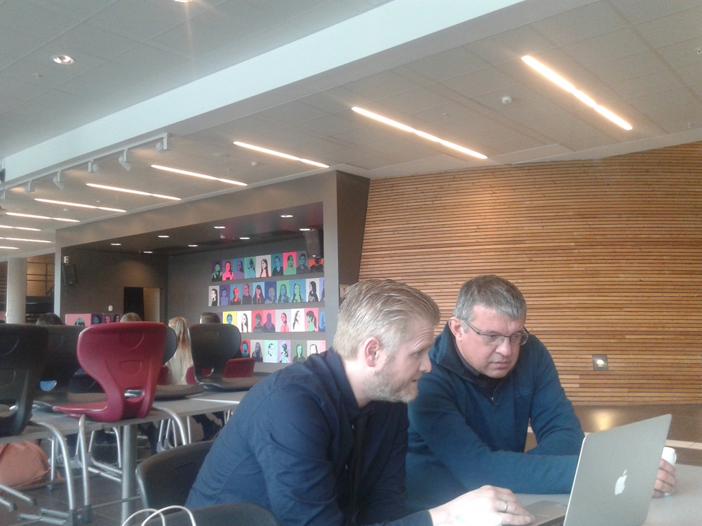 Svein Vathne, predstojnik oddelka Medijske komunikacije, je pripravil naš program usposabljanja v sodelovanju s predstojnikom programa Aranžerski tehnik /Exhibition design Joakimom Lundom. Skupaj sta nam predstavila vizijo šole, strateško usmeritev ter vse vidike organizacije. Primerjali smo izobraževalne programe, fleksibilnost, avtonomijo, povezave z okoljem in zaključno preverjanje-maturo s primerjavo ciljev, izvedbe in zahtevnosti.