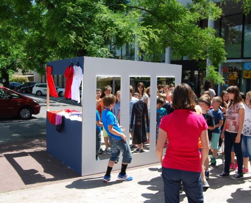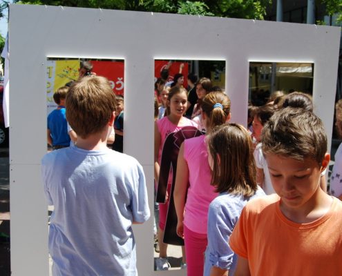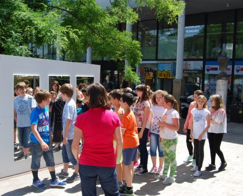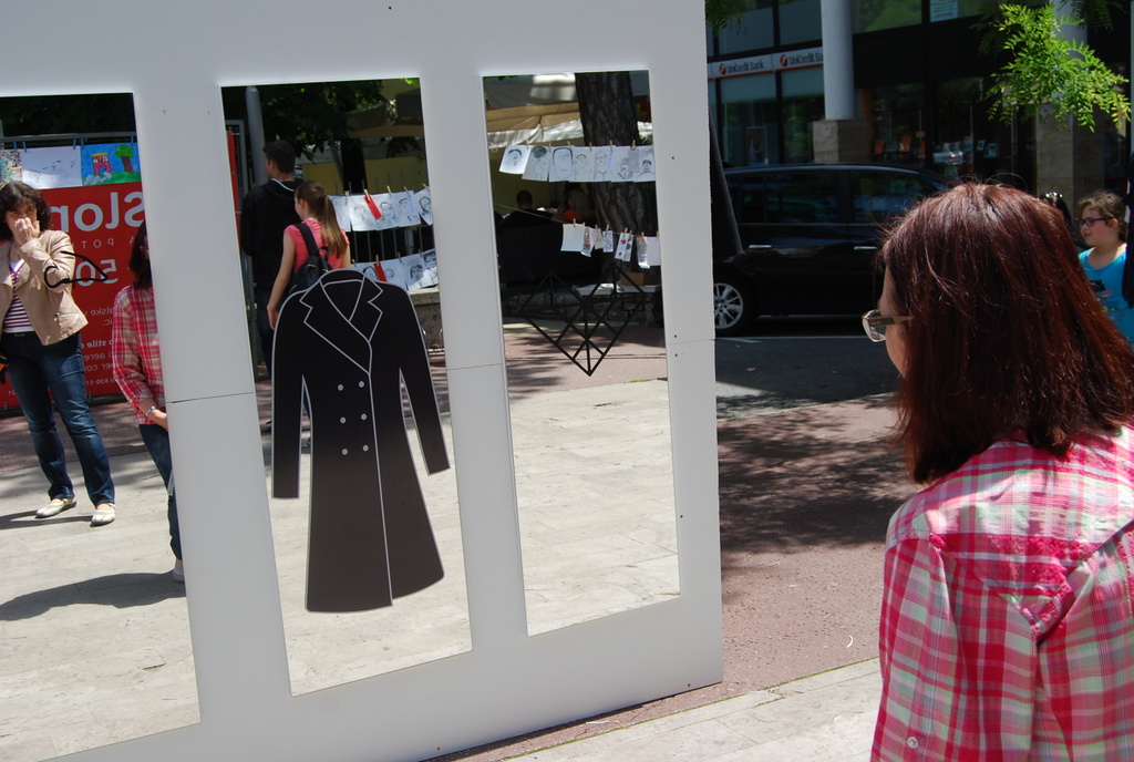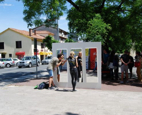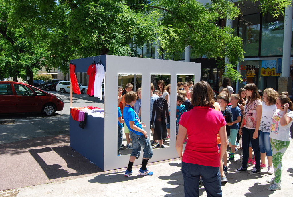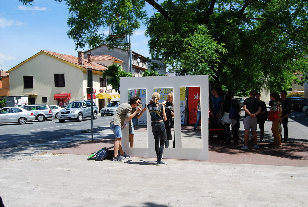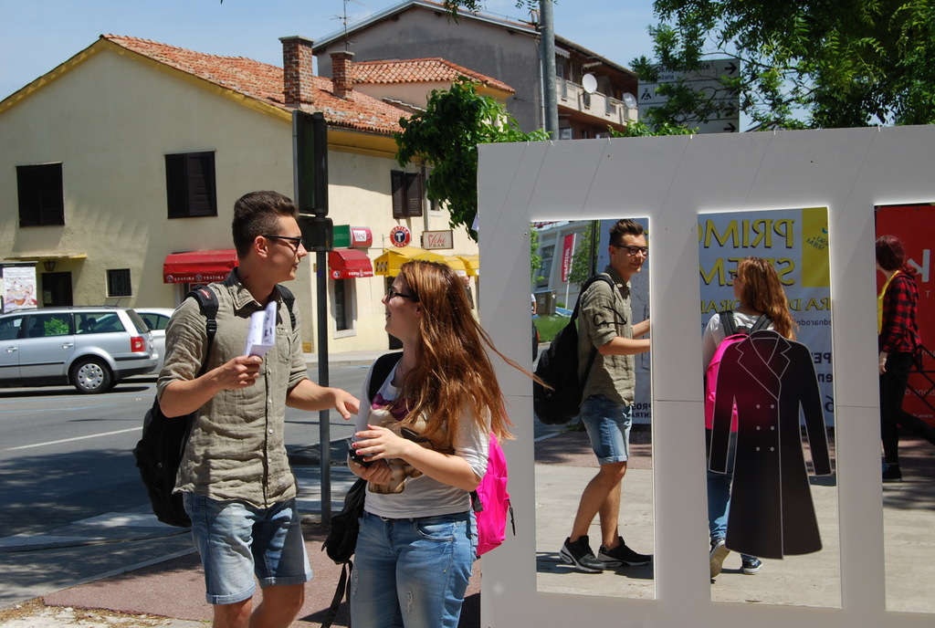 Mimoidoči so se lahko v treh ogledalih pogledali, nasmehnili, čudili ali občudovali ter se spogledali s svojo novo podobo v modrem plaščku, s kljukastim nosom in Kosovelovim konstruktivističnim srcem. Bili so izzvani, da izberejo eno od ogledal in se fotografirajo, potem pa svoj selfi čim prej objavijo na facebook-u ali instagram-u.