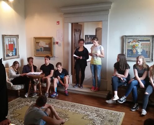 Četrtek, 16. junij 2016, so dijaki prvega letnika gimnazije preživeli v Štanjelu. Na sprehodu po naselju so se seznanili z njegovo preteklostjo in vrednotili pogoje za življenje v starem delu Štanjela danes. Spoznavali so posebnosti kraške arhitekture, v štanjelskem gradu so si ogledali tudi dela Lojzeta Spacala. V drugi polovici dneva pa so v različnih tehnikah upodabljali štanjelske motive.