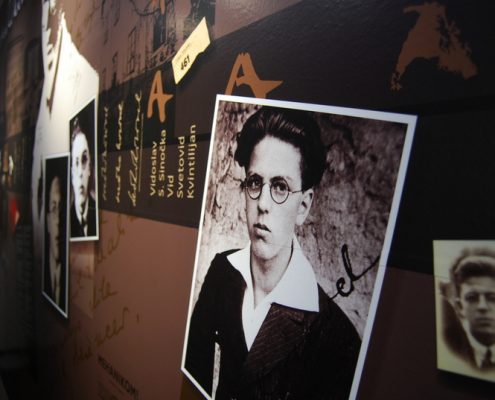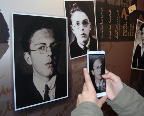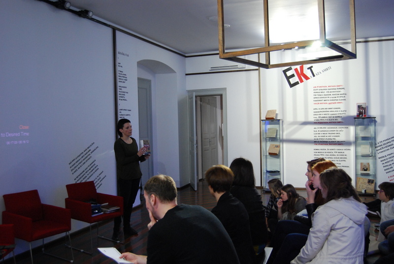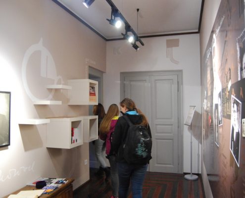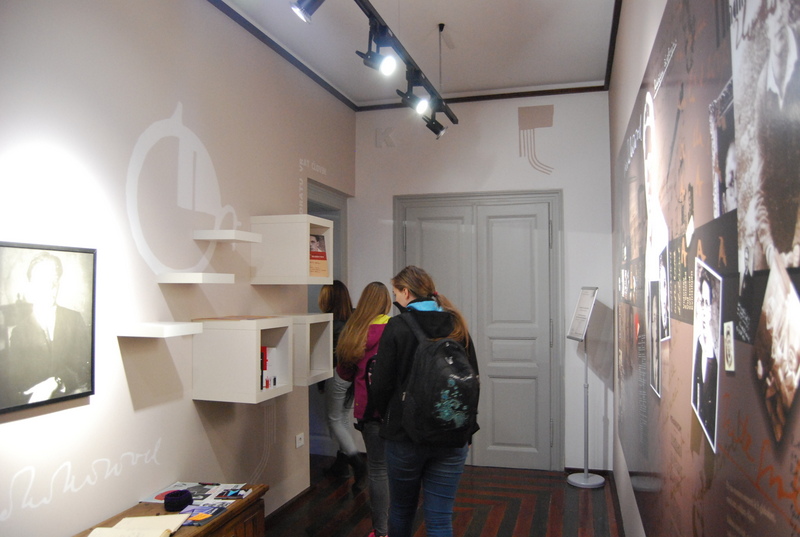 V spominski sobi, ki je zelo lepo konstruktivistično opremljena (obnovljena leta 2014), smo si najprej ogledali kratek film o pesniku Srečku Kosovelu in njegovem ustvarjanju. Videli smo tudi dragocene in dobro ohranjene originalne zapise, prve izdane pesmi, pisma …