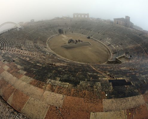 Preden smo si v Veroni ogledali areno, smo imeli čas za kosilo. V areni sta nam Gregor Šajn in Jaka Grže s pantomimo prikazala vrsto dogodkov, od najstarejših do tistih, ki si jih še danes lahko ogledamo v amfiteatru. Operni koncerti, gladiatorski boji, boji z divjimi zvermi, uprizarjanje bitk so samo nekateri izmed dogodkov, ki so jih Rimljani radi gledali. Začelo se je temniti in postajati mrzlo, zato smo pomahali Veroni v slovo in se odpravili proti domu.