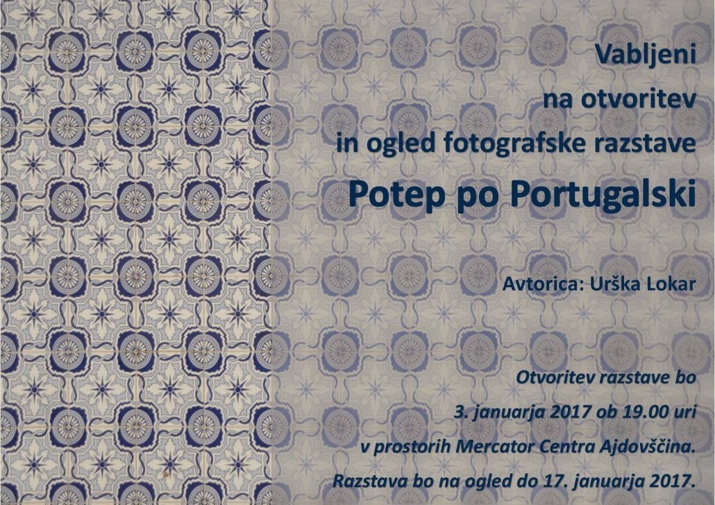 Dijakinja 4. a art Urška Lokar je v sklopu mednarodnega projekta EUskills.com obiskala Portugalsko. Poleg prakse v portugalskih podjetjih, so si dijaki in profesorji ogledali številne znamenitosti. Njeni utrinki te gostoljubne dežele bodo v kratkem na ogled v Mercator centru Ajdovščina. Vabljeni na odprtje razstave Potep po Portugalski, ki bo v torek, 3. janarja 2017 ob 19h.