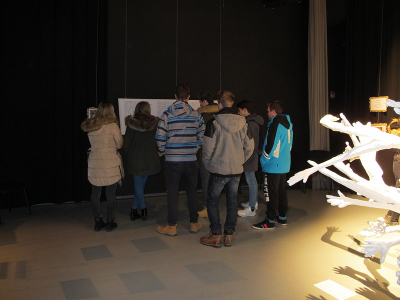 V ponedeljek, 30. 1. 2017, pa so si razstavo ogledali še dijaki 1. letnika programa aranžerski tehnik v spremstvu razredničarke 1. art, prof. Petre Ražem, prof. Nadje Prihavec in prof. Renate Nikolić. Srečali so se tudi z avtorico razstave, ki je spregovorila o tem, kako jo je pripravila in razširila ter komu jo posveča.