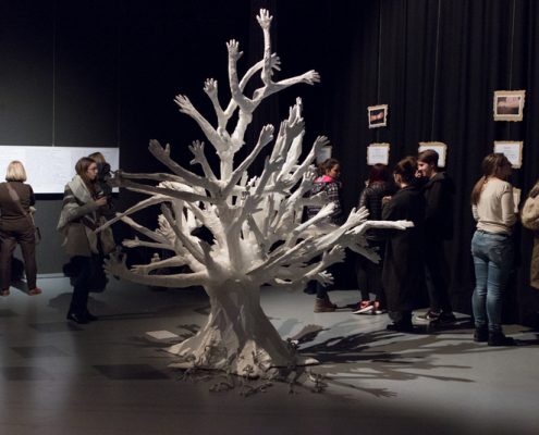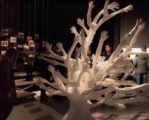 Tokrat se nam mlada umetnica ponovno predstavlja z razstavo o holokavstu, vendar v novi, razširjeni obliki. Osrednji del razstave je ponovno drevo življenja v simbolični beli barvi, ki je letos sestavljeno iz 72 rok (72. obletnica osvoboditve koncentracijskega taborišča Auschwitz) in s koreninami v obliki Davidove zvezde, ki predstavlja simbol judovstva. Rdeča nit letošnje razstave pa so pričevanja preživelih taboriščnikov in internirancev iz naše okolice. Ines je ob pripravljanju razstave govorila s Pavlo Simčič, Maro Grmek Pirjevec, Maro Žetko, Elico Ukmar Trobec, Zoro Vitez Trobec in Sonjo Zabric Vrščaj. Posnela je tudi kratek film, v katerem je predstavljena zgodba Levina Lea Rodice, ki je bil izgnan pri svojih sedmih letih.