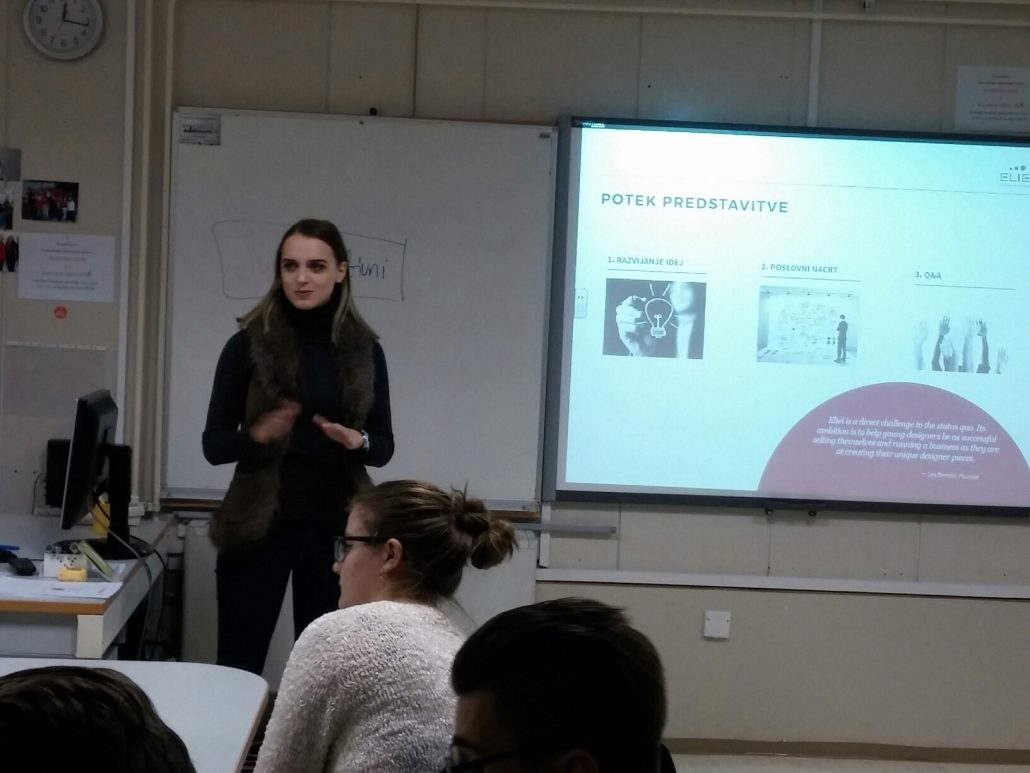 Februarja nas je obiskala bivša dijakinja naše šole in podjetniškega modula Lea Bernetič. Lani je zaključila študij na UCA, smer modni management in marketing. V diplomski nalogi je ustanovila podjetje ELIEI, na podlagi svoje lastne ideje, ki ga je z lanskim oktobrom, na svoj 23. rojstni, tudi registrirala.